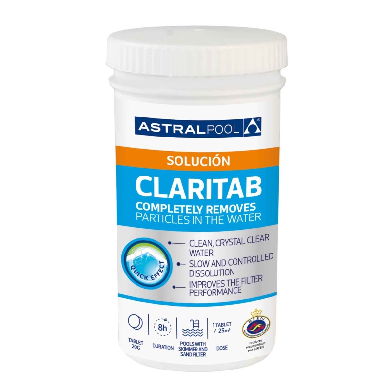 Nuevas tabletas floculantes super-concentradas «coagulantes» y «floculantes», especialmente formuladas para obtener un mejor rendimiento del filtro de arena. De disolución lenta y controlada, elimina completamente las partículas en suspensión dentro del agua (iones metálicos, materia orgánica…). Ahorra al reducir el consumo de los productos de desinfección.