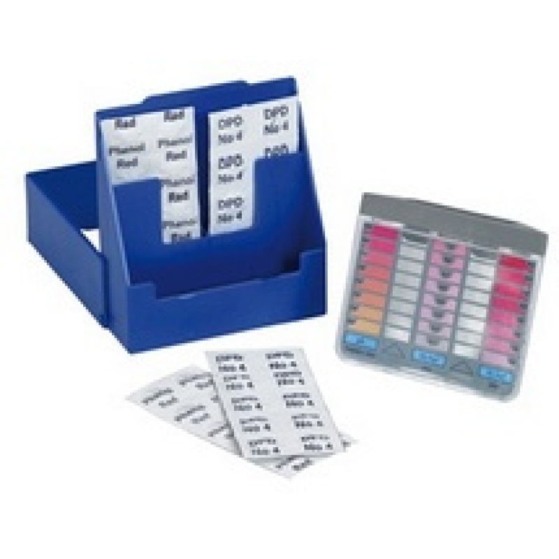 De diseño moderno y práctico. En caja de plástico azul. Con tabletas DPD y tabletas Phenol.