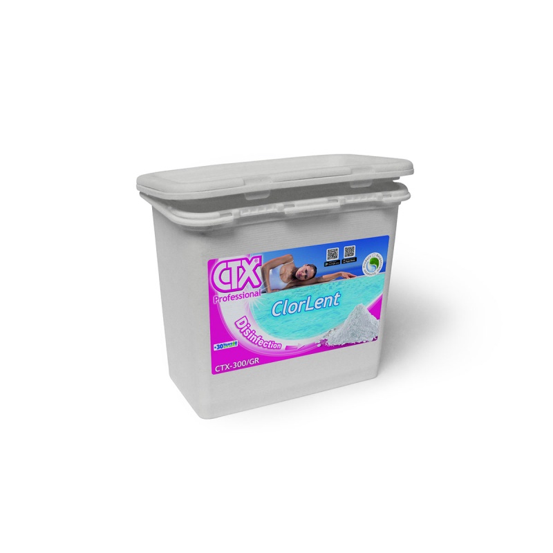 Tricloro en polvo de disolución lenta con un 90% de cloro útil, altamente estabilizado, para el tratamiento y desinfección del agua en piscinas.