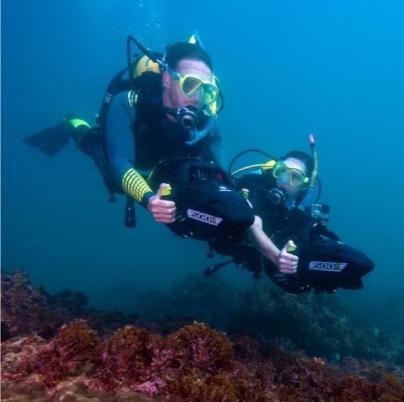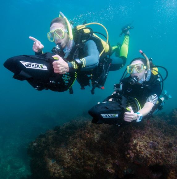 - Diseñado para buzos profesionales y recreativos, este potente seascooter con 500W de potencia se desliza por el agua a velocidades de hasta 7 km/h.